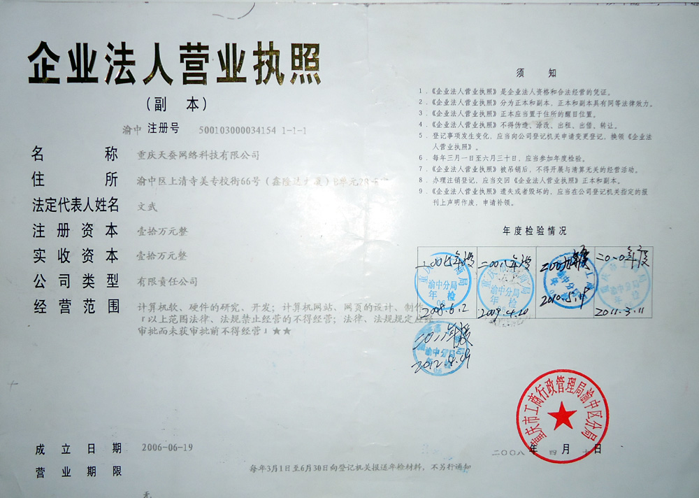 重慶天蠶網(wǎng)絡(luò)科技有限公司營(yíng)業(yè)執(zhí)照                重慶天蠶網(wǎng)絡(luò)科技有限公司稅務(wù)登記證(國(guó)稅)