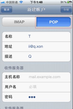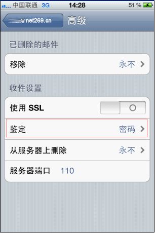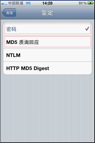 八、iPhone雖然默認的鑒定方式是“密碼”,但是實際上系統(tǒng)中使用apop方式,所以一般用戶設定好以后無法使用,可以先改變一種鑒定方式(如MD5等)并確定,再選回“密碼”方式,此時的iPhone就可以正常使用了。