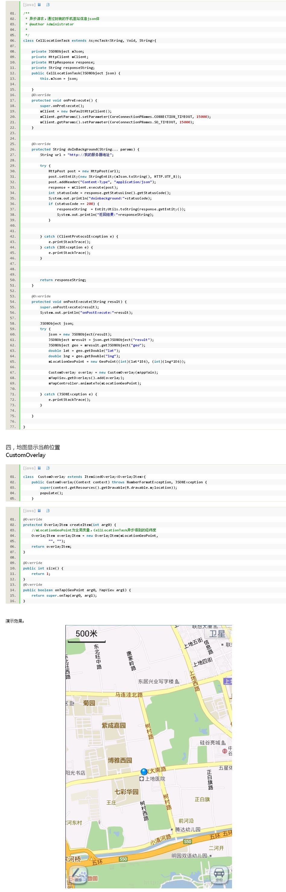 放到百度地圖中,位置有些偏差,這個就需要糾偏了,因為通過基站信息請求到的位置數(shù)據(jù)并非是百度的數(shù)據(jù)。以上就是通過基站信息,進(jìn)行基站定位的實現(xiàn)原理,就是通過MCC,MNC,LAC,CID等屬性