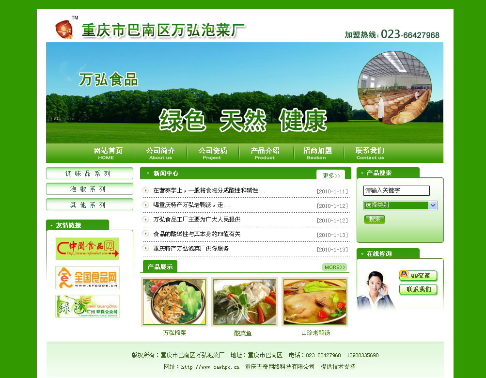 重慶萬(wàn)弘泡菜有限公司主要經(jīng)營(yíng)重慶泡菜、老鴨湯、排骨蹄花湯、野生菌、泡椒魚(yú)、酸菜魚(yú)、風(fēng)蘿卜老鴨湯等.萬(wàn)弘泡菜網(wǎng)址www.cqwhpc.cn