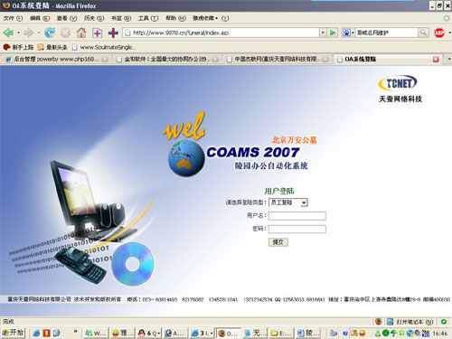 陵園辦公自動(dòng)化系統(tǒng)2007(Cemetery OA Manage System2007縮寫(xiě)COAMS2007)是一套涵蓋陵園管理(公墓管理)、公墓統(tǒng)計(jì)(銷(xiāo)售統(tǒng)計(jì)、公墓統(tǒng)計(jì)、任意時(shí)間段統(tǒng)計(jì))、殯儀館管理、信息管理、文件處理、人事管理、合同管理(合同套打、合同完整打?。①M(fèi)用管理和查詢(xún)(費(fèi)用補(bǔ)交、費(fèi)用繳納記錄、費(fèi)用查詢(xún)等)、權(quán)限管理等功能.它不僅完善了陵園的業(yè)務(wù)流程、操作模式管理方法.而且徹底解決了信息收集、處理、發(fā)布的整個(gè)過(guò)程.促進(jìn)了陵園管理的公開(kāi)化、電子化、規(guī)范化.對(duì)陵園的數(shù)據(jù)進(jìn)行了安全、高效的管理.及時(shí)準(zhǔn)確的為陵園行業(yè)的工作決策提供了有效的數(shù)據(jù).真正實(shí)現(xiàn)陵園企業(yè)的電子化 詳細(xì)咨詢(xún)重慶天蠶網(wǎng)絡(luò)科技有限公司 咨詢(xún)電話:023-60814493 |